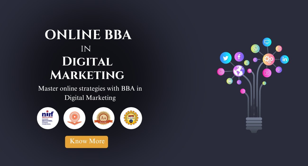 An Online BBA in Digital Marketing is a dynamic undergraduate program tailored to provide comprehensive knowledge and practical skills in the field of business administration with a specialized focus on digital marketing strategies and techniques. This program equips students with the essential tools to thrive in the digital landscape, preparing them for a wide array of career opportunities in marketing, advertising, e-commerce, and more. Online BBA courses in Digital Marketing are designed to offer a flexible and accessible learning experience through digital platforms, enabling students to pursue their degree without the constraints of traditional campus-based education. Leveraging cutting-edge technologies, video lectures, interactive assignments, and online forums, these programs facilitate a robust learning environment conducive to academic excellence and professional growth.