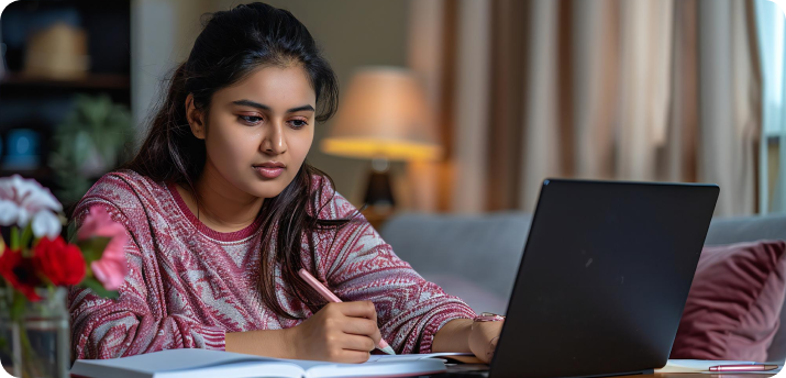 An online B.Com degree is an undergraduate commerce programme delivered entirely through digital platforms. It focuses on core commerce subjects such as accounting, finance, economics, taxation, and business management. The programme allows students to complete their degree without attending physical classrooms.