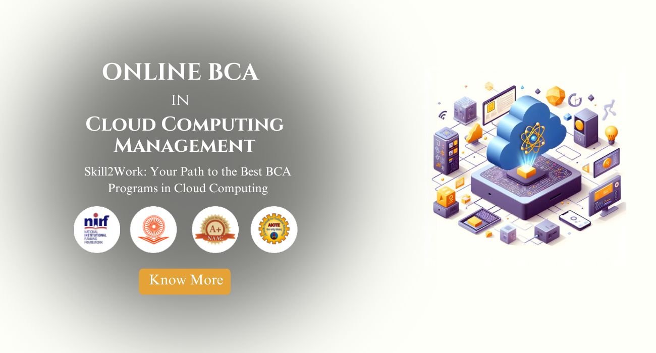 Online BCA (Bachelor of Computer Applications) in Cloud Computing is a specialized undergraduate degree program focused on imparting knowledge and skills related to cloud computing technologies. The curriculum of the Online BCA course typically includes subjects such as programming, database management, virtualization, cloud infrastructure management, security in cloud computing, and other advanced topics related to cloud technologies and applications. This program is structured to produce professionals who can leverage cloud computing to enhance organizational efficiency, scalability, and innovation. This course is designed to equip students with the expertise required to excel in the cloud computing industry, all while providing the flexibility and convenience of online learning.