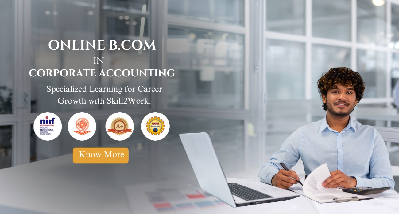An Online B.Com in Corporate Accounting is an undergraduate program designed for students interested in the financial management and accounting aspects of businesses. This program offers a specialized focus on corporate accounting, taxation, auditing, and financial reporting, providing a comprehensive education for those aiming to build a career in accounting and finance. Delivered through online platforms, this program caters to both students and working professionals seeking flexibility in their education.